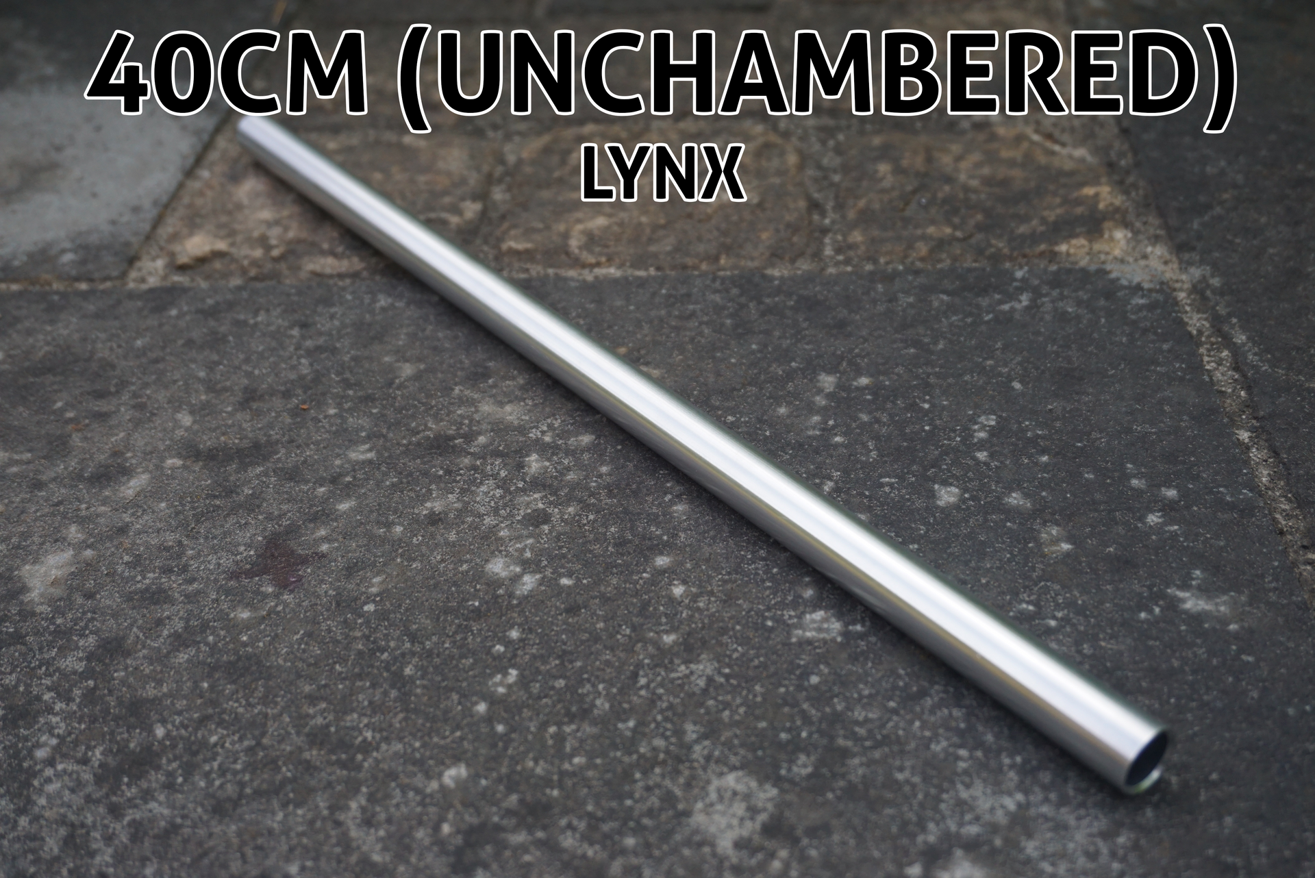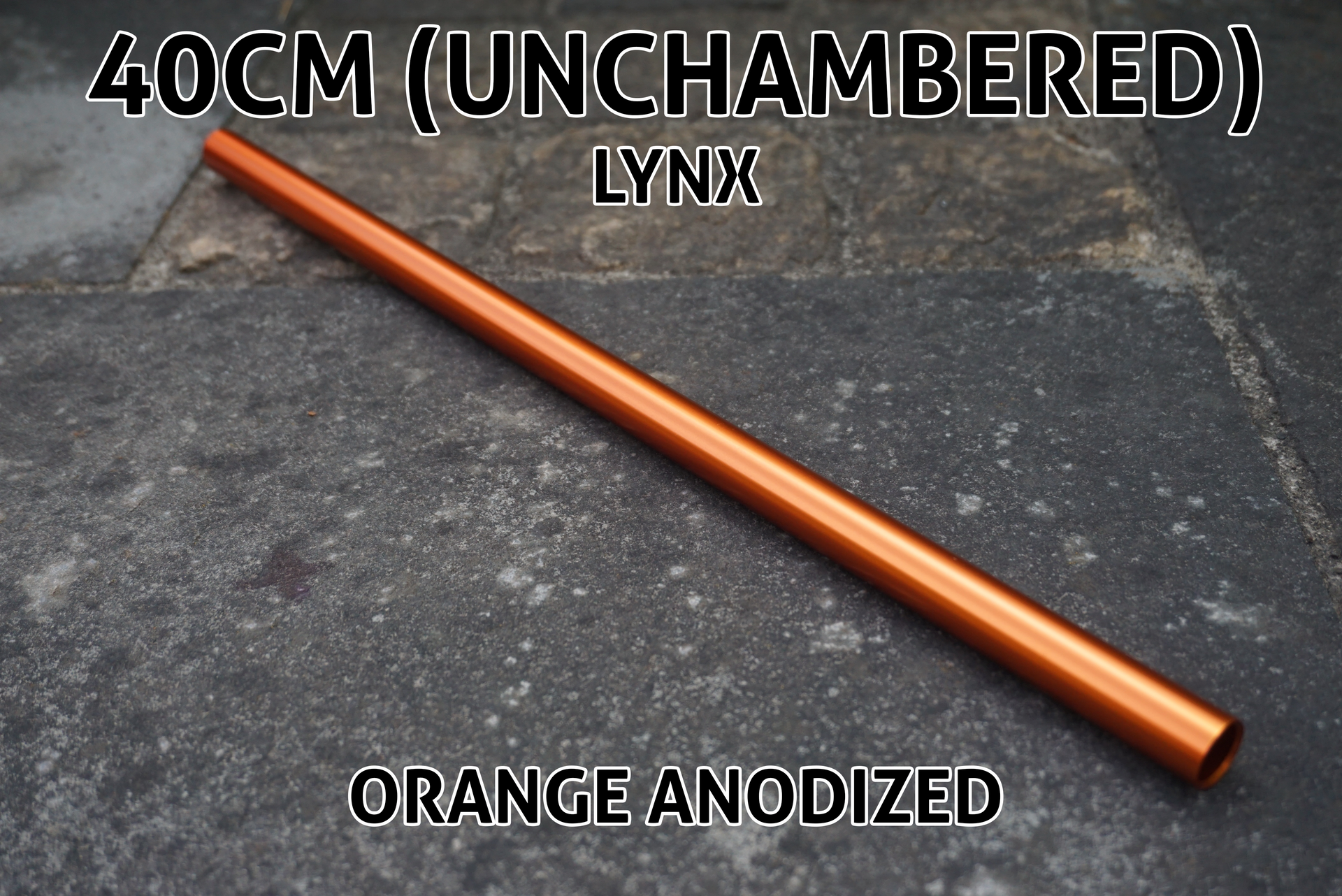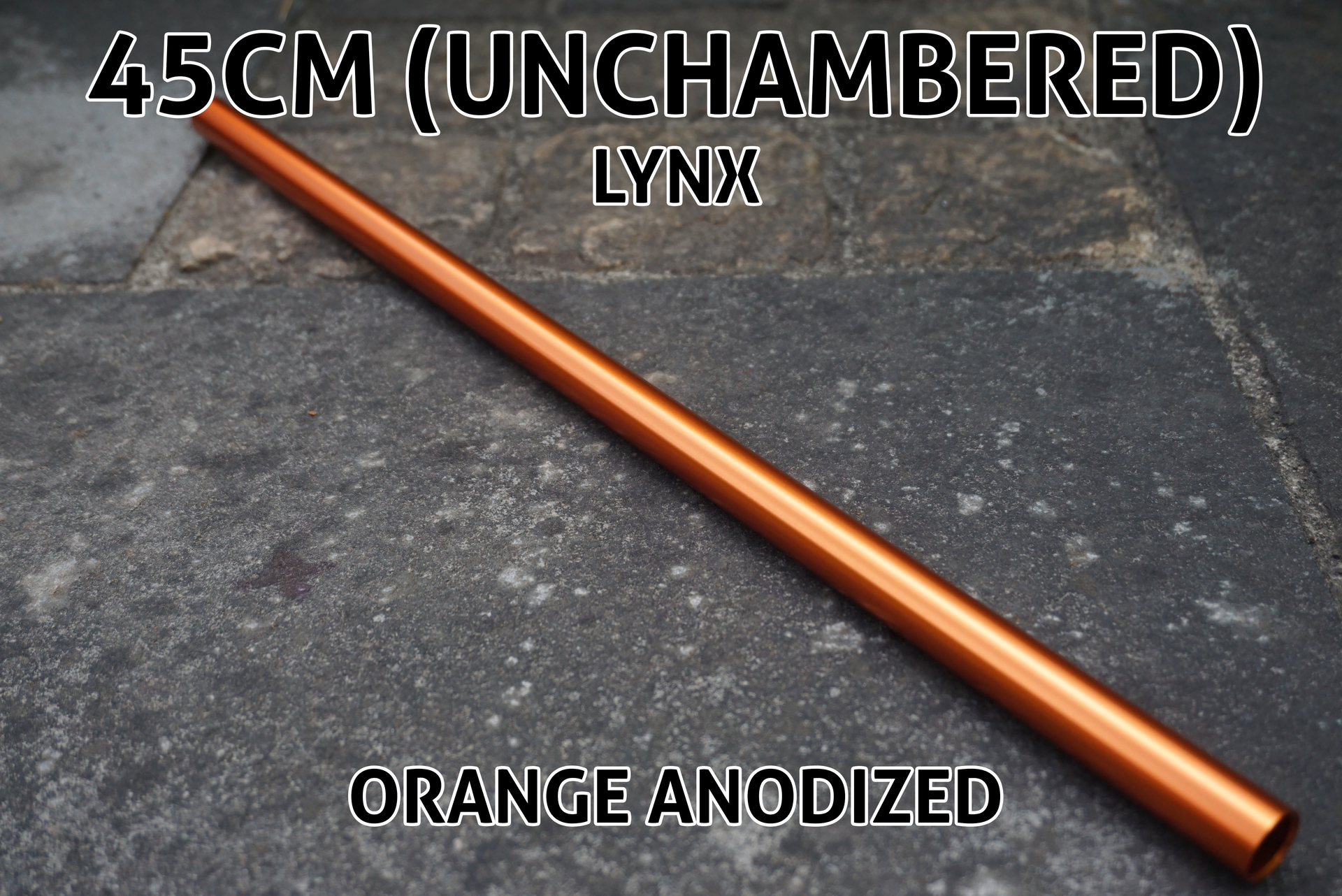 These tighter inner diameter barrels have a machined chamber specifically for o-ring type pushers. There are also unchambered versions specifically for the Lynx by Orion Blasters, though they should also work with other blasters that have pushers that do not use o-rings. We have also now commissioned and carry a special 15cm barrel specifically for the Gecko! This barrel has no machined chamber where the dart enters, however it has the last 5cm machined out to keep the effective barrel length at 10cm, which is the most efficient length for the Gecko while allowing the end of the barrel to sit flush with the tip of the blaster. This lets the barrel show when priming, and adds a coolness factor without sacrificing performance.