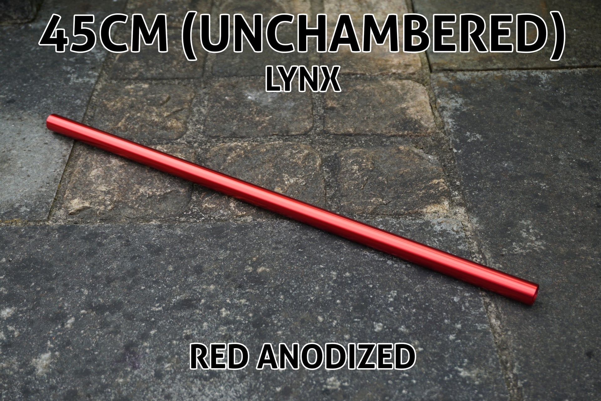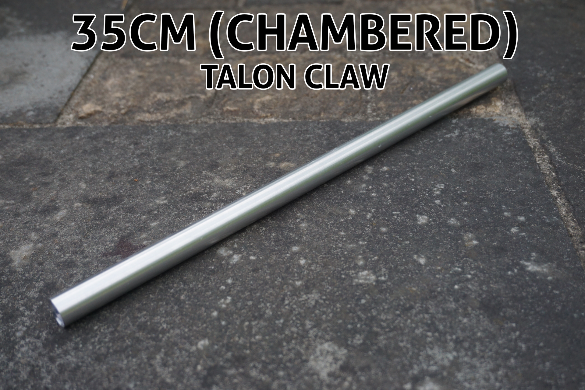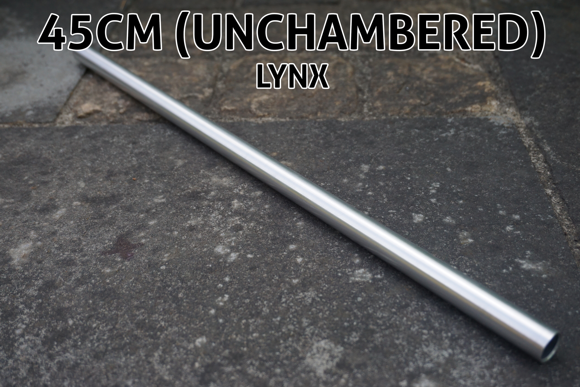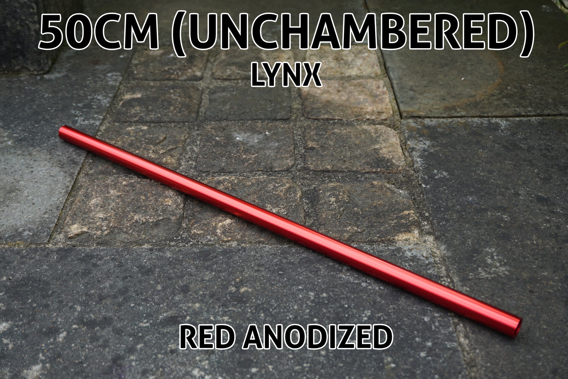 These tighter inner diameter barrels have a machined chamber specifically for o-ring type pushers. There are also unchambered versions specifically for the Lynx by Orion Blasters, though they should also work with other blasters that have pushers that do not use o-rings. We have also now commissioned and carry a special 15cm barrel specifically for the Gecko! This barrel has no machined chamber where the dart enters, however it has the last 5cm machined out to keep the effective barrel length at 10cm, which is the most efficient length for the Gecko while allowing the end of the barrel to sit flush with the tip of the blaster. This lets the barrel show when priming, and adds a coolness factor without sacrificing performance.