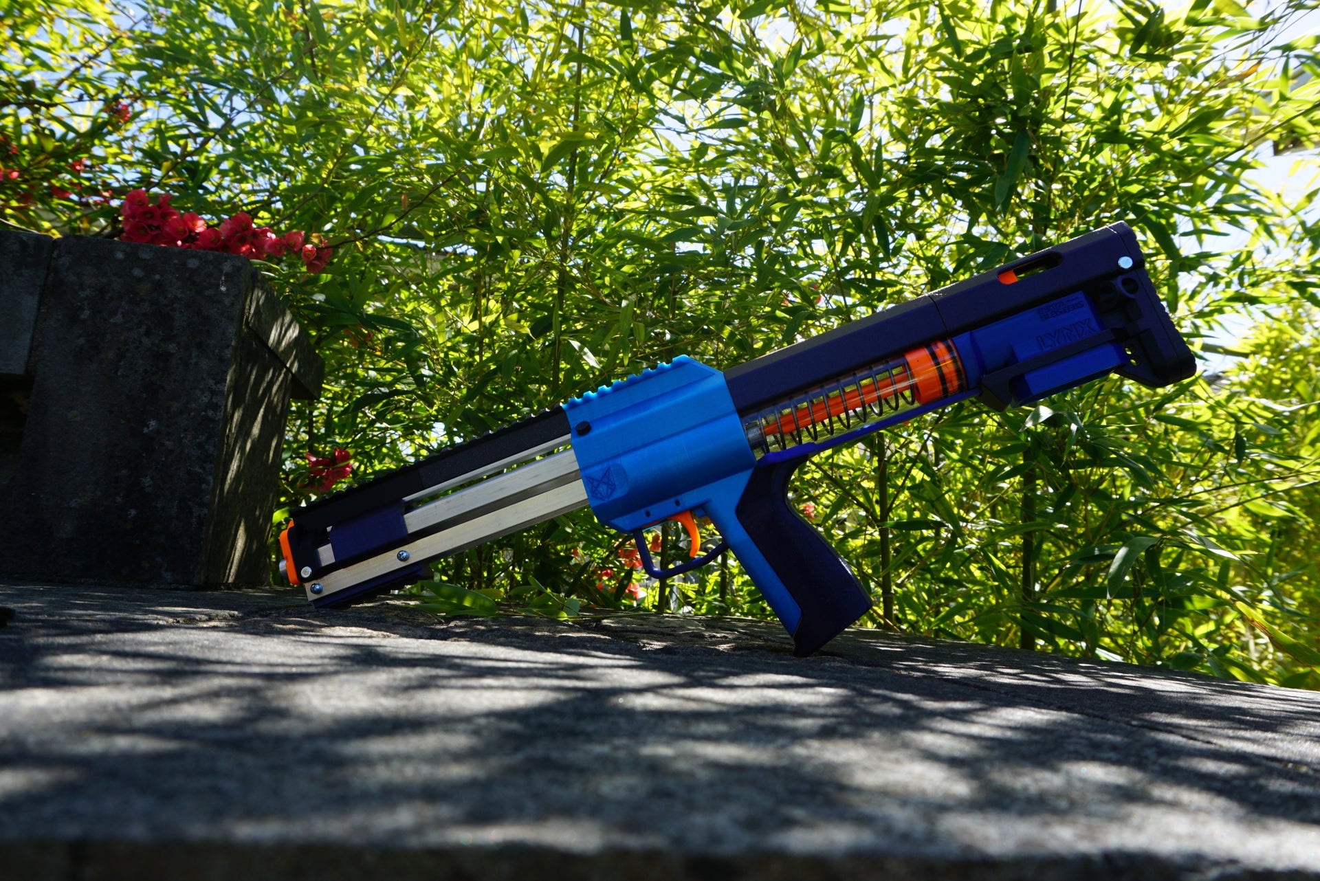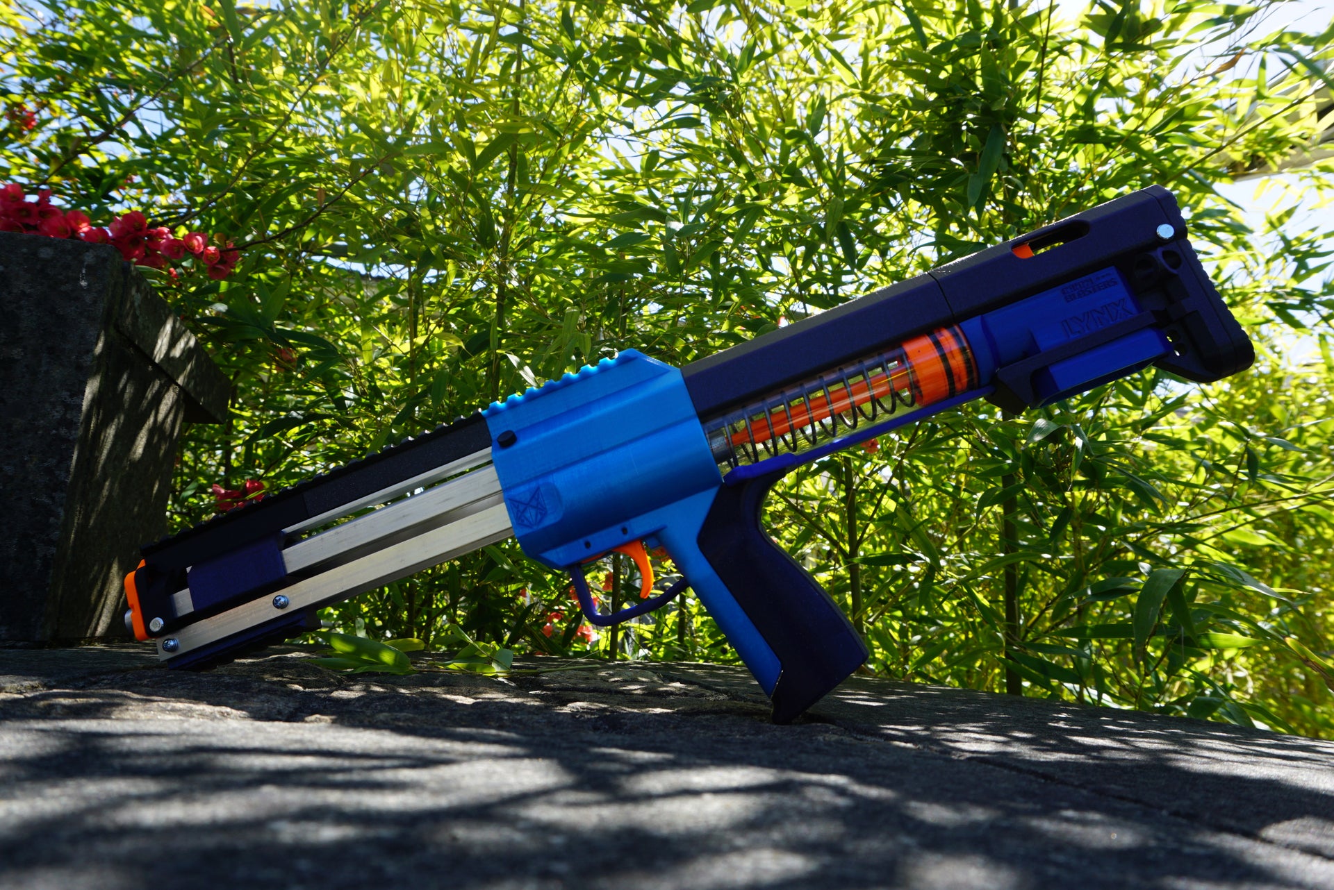 This Fox Up we are calling "Deep Dark Ocean" is a Fully Assembled and tested lynx built from an assortment of dark blue and blue filaments. This blaster features an 18" barrel and our SF25-TC Spring.