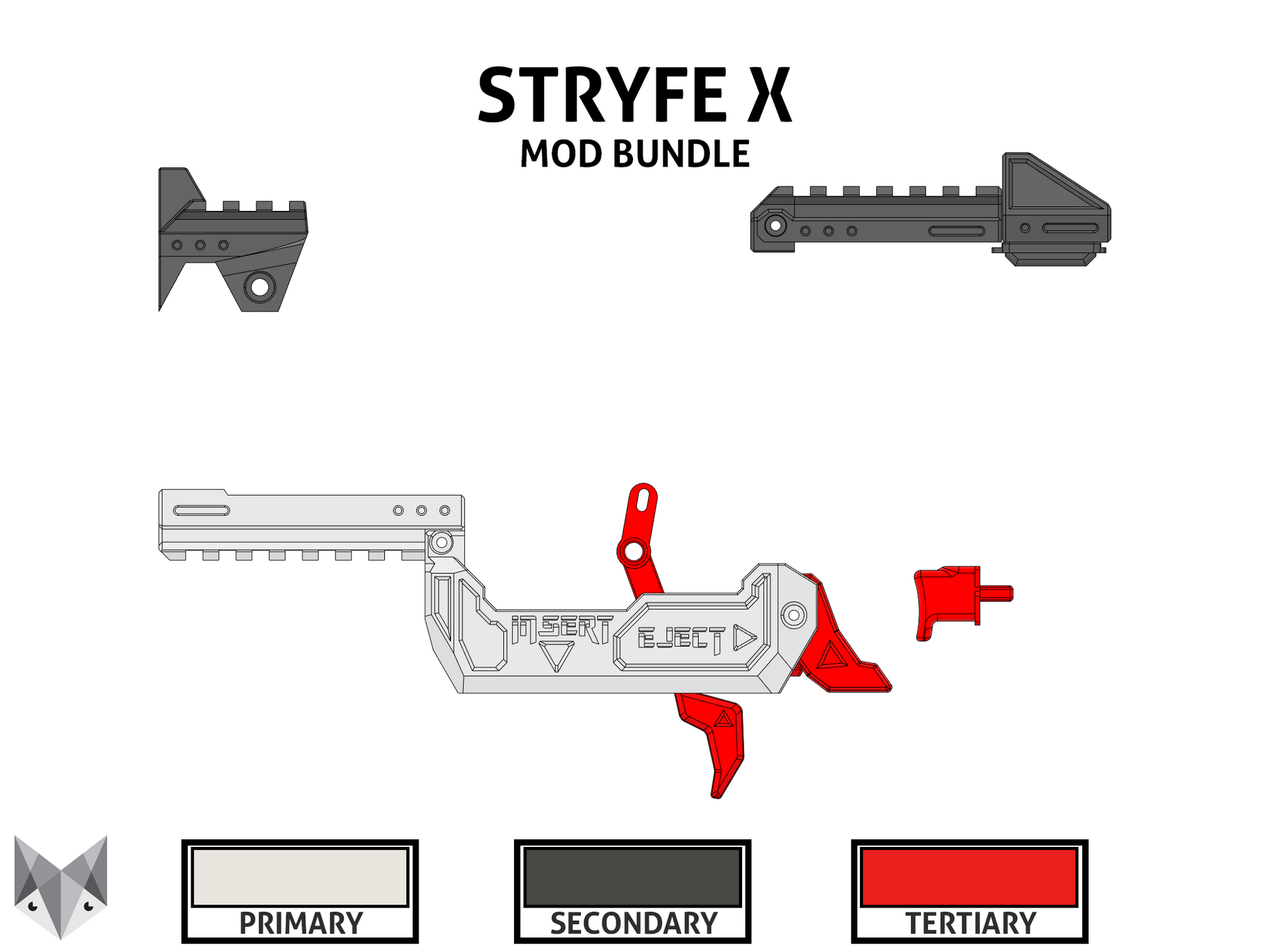 The full suite of mod parts for the Stryfe X all in one bundle with a discount to the overall cost.