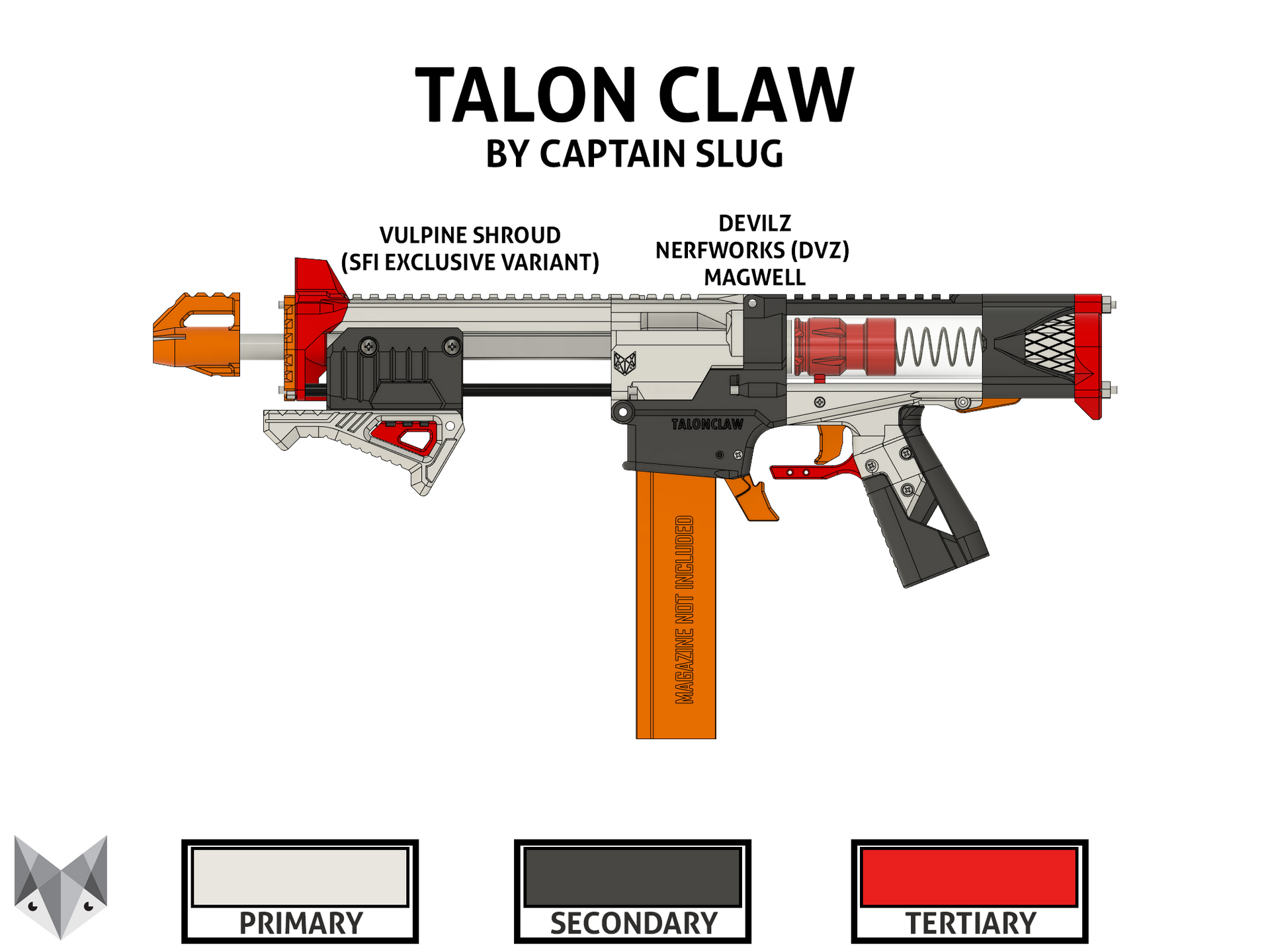 The Talon Claw is a Mag-Fed Pump-Action Homemade Blaster design released as an Open Source Non-Commercial