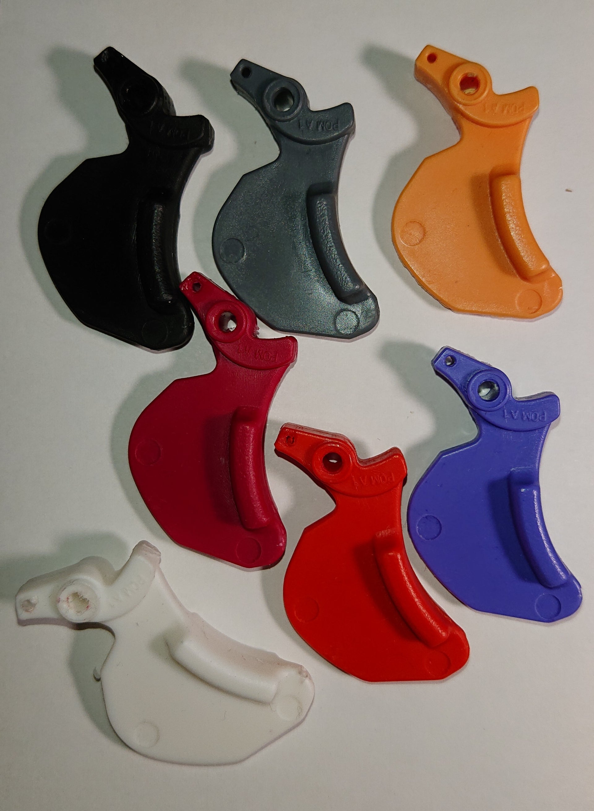For installation, you will need to remove the existing hammer piece from your Sweet Revenge. Some of the pins may be solvent welded to one portion of the other connecting pieces. I used a spare pin from another blaster and a small hammer to carefully push the pins out. This will require a little bit of force, so just be careful. After the pins have been removed, the hammer piece can be replaced with the new one. Just remember where each pin came from and they should all fit back together. The smaller pins have some knurling on one side that helps keep them in place on the connecting pieces.